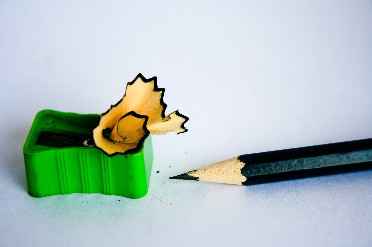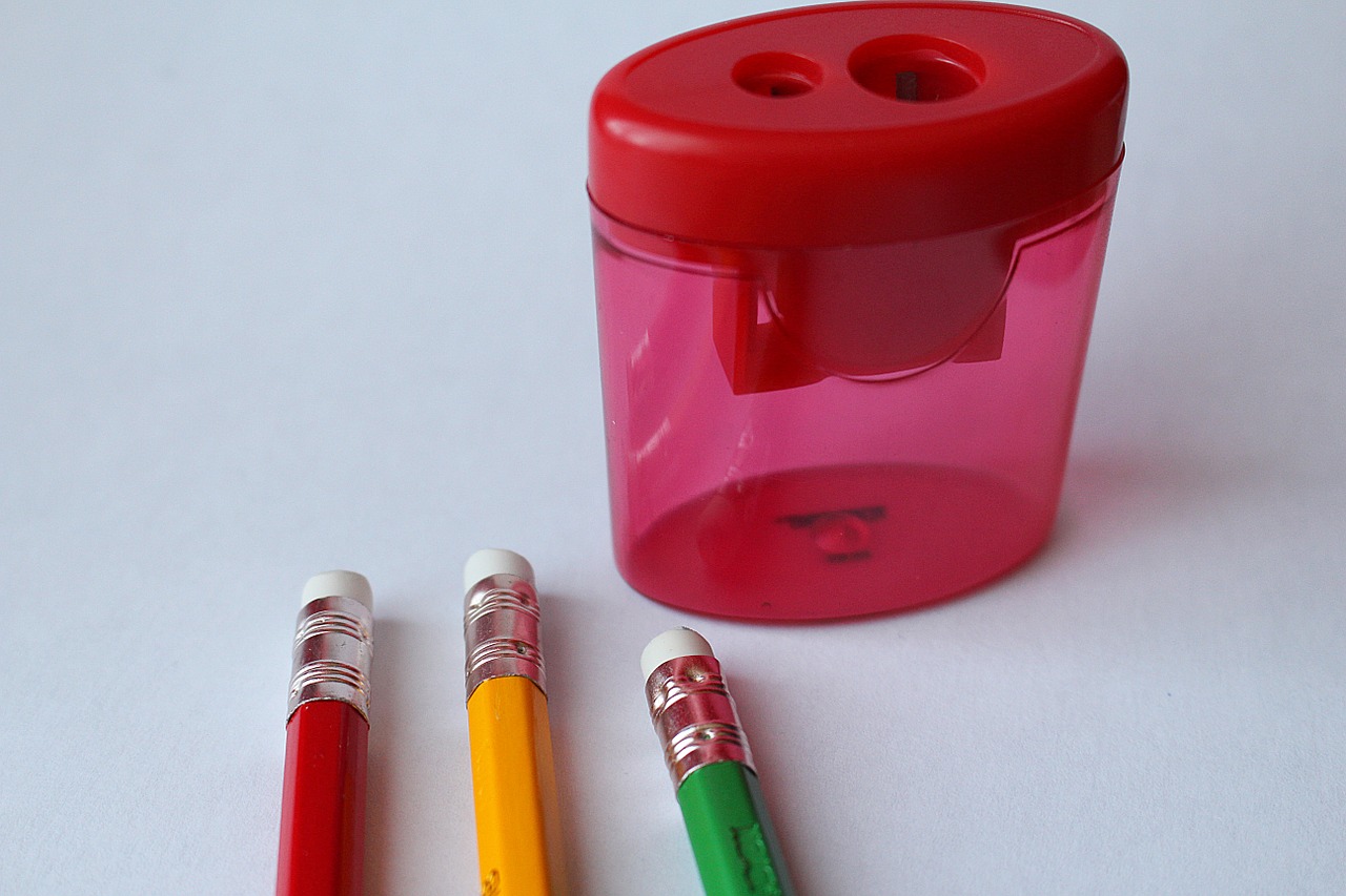 - Nie zwracasz uwagi, że do grubych kredek jest potrzebna większa temperówka. Nie kupujesz temperówki z pojemniczkiem. A co tam! Niech dziecko co chwilę biega po klasie!