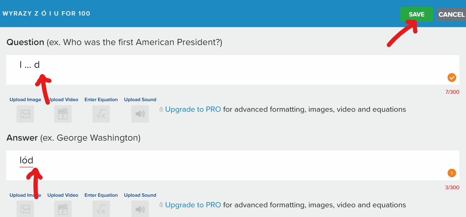 Klikamy przycisk „Final Factile”, wpisujemy swoje pytanie i odpowiedź, a następnie zatwierdzamy „Zapisz”.