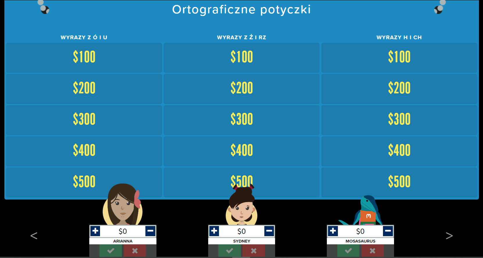 Jeżeli jest tyle minusów wersji darmowej, to dlaczego proponuję ten program? Nasze quizy wzbudzają wśród uczniów wiele emocji, mają niebanalną oprawę graficzną, a co najważniejsze, możemy stopniować trudność naszych pytań i dzielić je na kategorie.