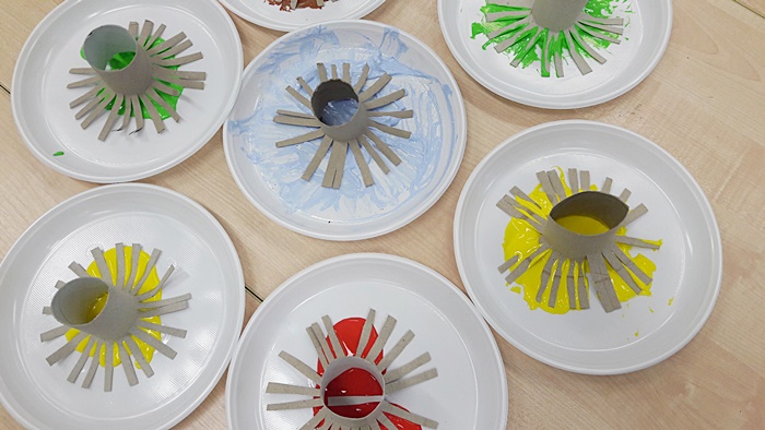 - Nacinamy dookoła kartonową rolkę po papierze toaletowym.