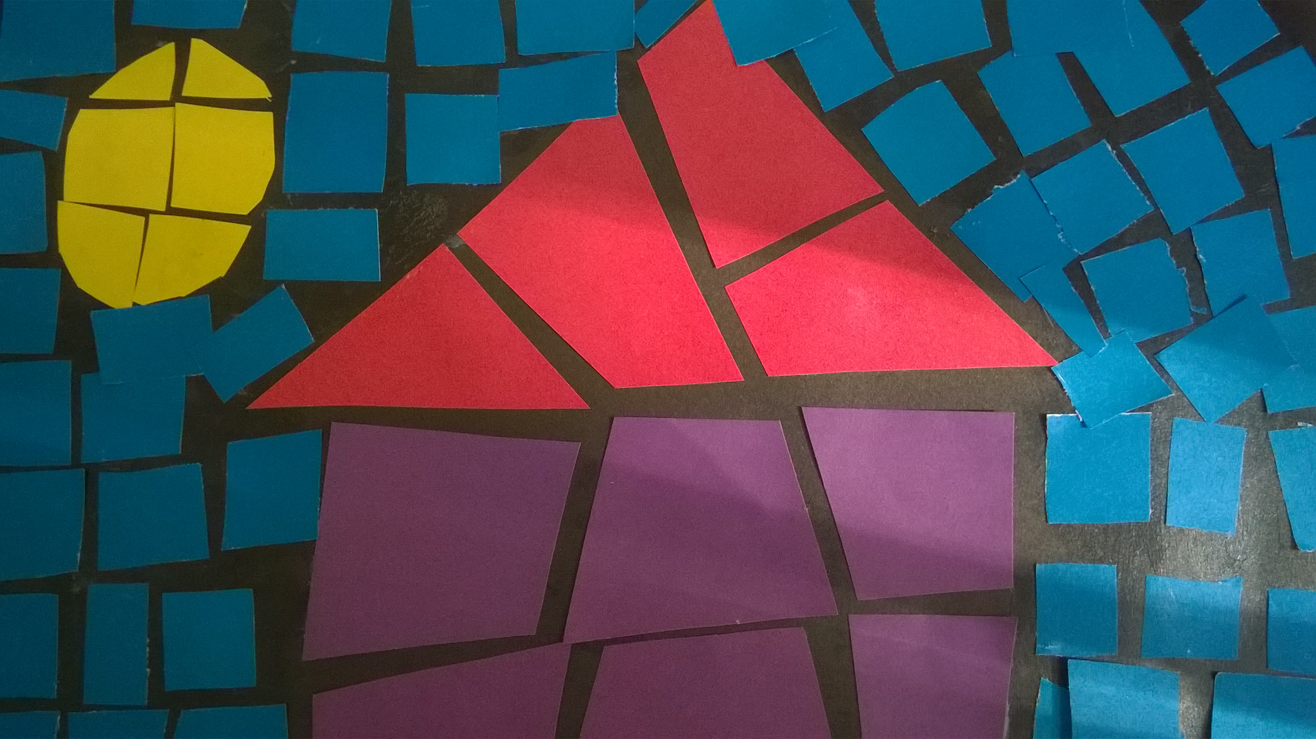 Alternatywą jest obrazek z figur geometrycznych na ciemnym tle. Nie będzie to jednak dekoracja okna, ale naprawdę praca o wyjątkowym uroku. Przy czym dziecko może się wykazać kreatywnością, samodzielnie projektując wzór, co przy tradycyjnym witrażu raczej nie jest możliwe. Trzeba jednak pamiętać, że jest to dość trudna forma, wymagająca cierpliwości i koncentracji. Efekt końcowy wart jest jednak wysiłku. Geometryczne witraże możemy wykonać już nawet z ośmiolatkami. Poniżej prezentuję prace dziewięciolatków.