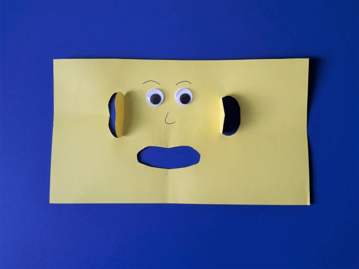 3. Wycinamy usta oraz uszy. Uwaga! Estetyczne wycięcie uszu bez specjalnego nożyka do papieru wymaga dużej wprawy. Dzieci mogą po prostu dokleić uszka i efekt będzie ten sam. Przyklejamy ruchome oczka i dorysowujemy nos oraz brwi.
