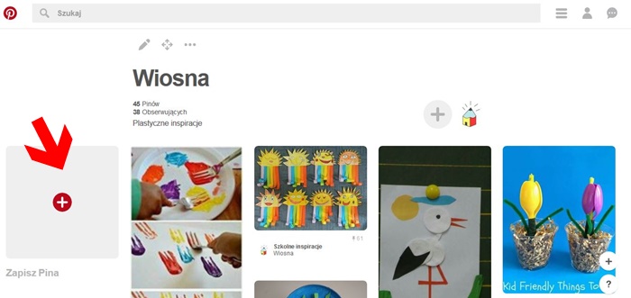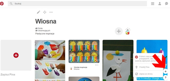 Pina możemy dodać z katalogu, który oferuje nam Pinterest, ale możemy też dodać zdjęcia własnych pomysłów na prace plastyczne z komputera, a nawet ze stron internetowych, jeśli mają taka opcję.