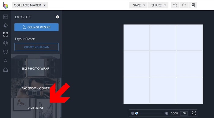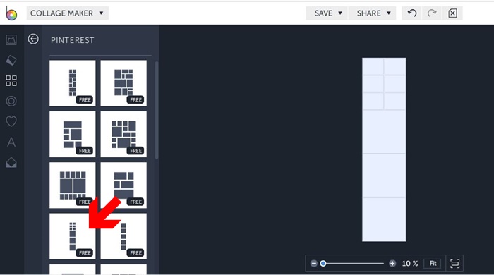 Następnie w Layouts wybieramy Pinterest oraz wygląd pina, czyli układ zdjęć. Nie trzeba się przejmować ilością i wielkością kwadracików, bo można je w każdej chwili usunąć, poszerzyć, powiększyć czy połączyć.