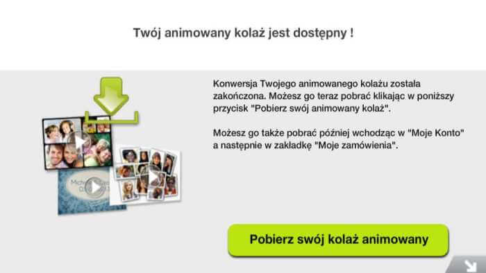 Przygotowaną animowaną pocztówkę możemy pobrać na swój komputer, wysłać mailem lub udostępnić w mediach społecznościowych. Pobieranie filmów dość długo trwa, ale na animowaną kartkę nie musimy długo czekać. Pamiętajmy, że jeśli chcemy zachować muzykę, to z takich animowanych kolaży musimy utworzyć film.