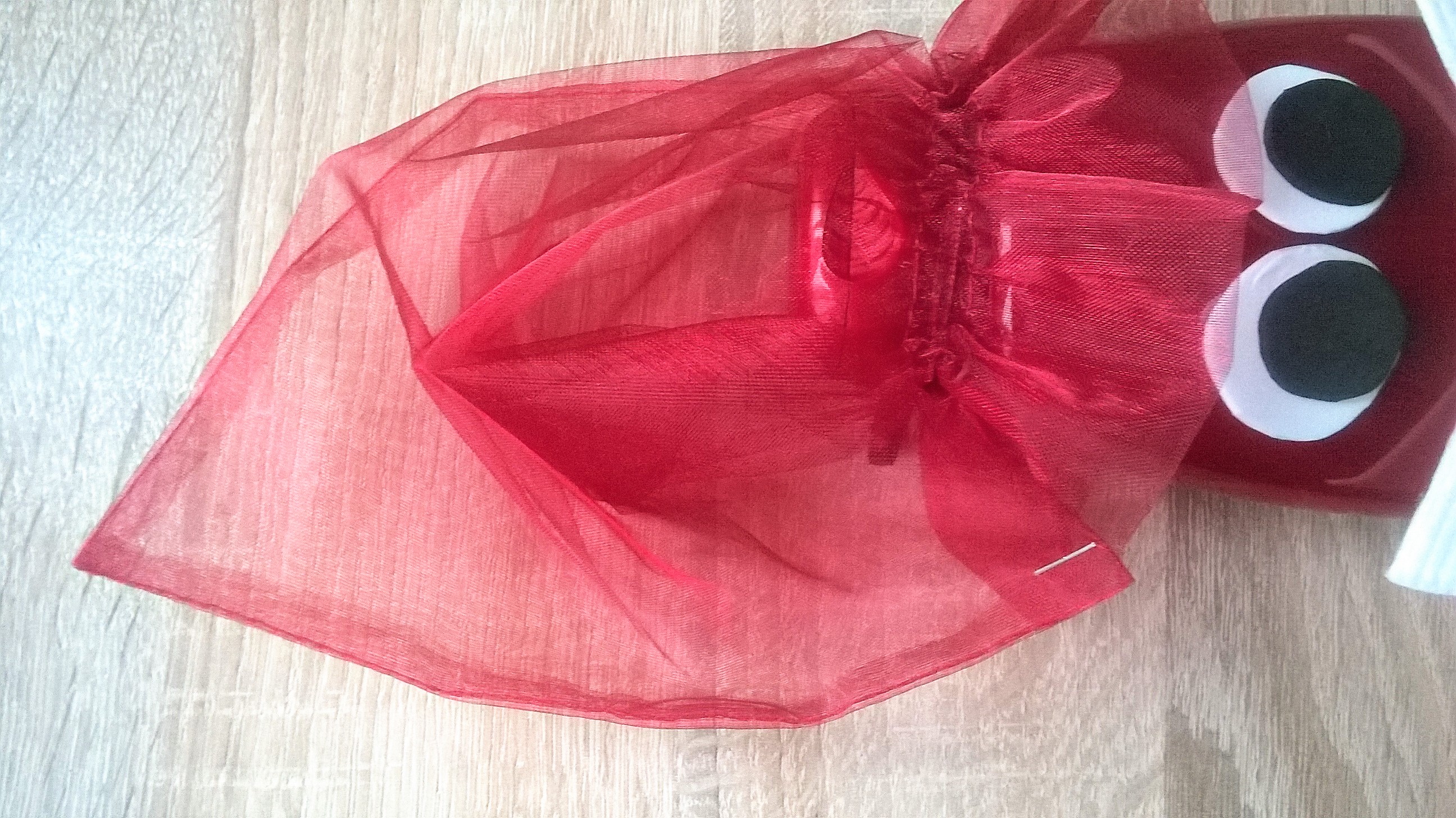 - mały czerwony woreczek z organzy lub prostokątny kawałek czerwonego materiału (ewentualnie bibuły)