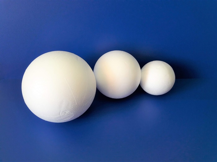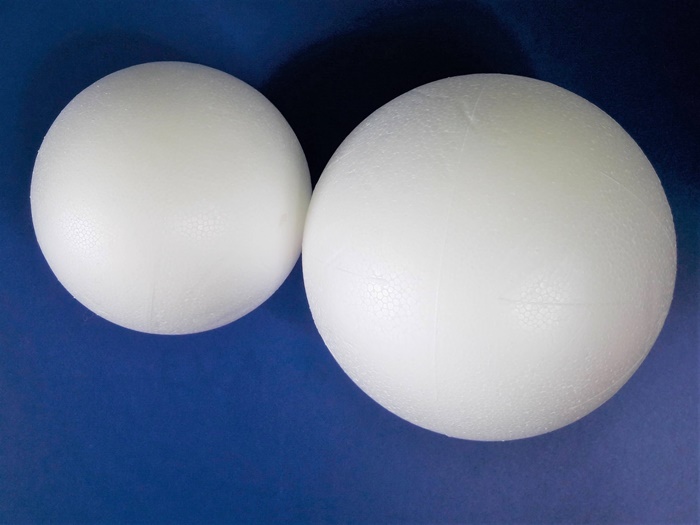 - 3 kule styropianowe o różnych średnicach np. 10cm, 8cm, 6cm
