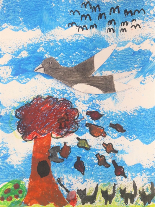 Na koniec zajęć możemy wykonać pracę plastyczną na temat jesiennych odlotów ptaków.