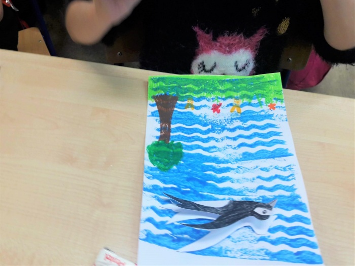 Praca plastyczna sprawiła dużo radości. Połączenie różnych technik sprawiło, że dzieci się nie nudziły.