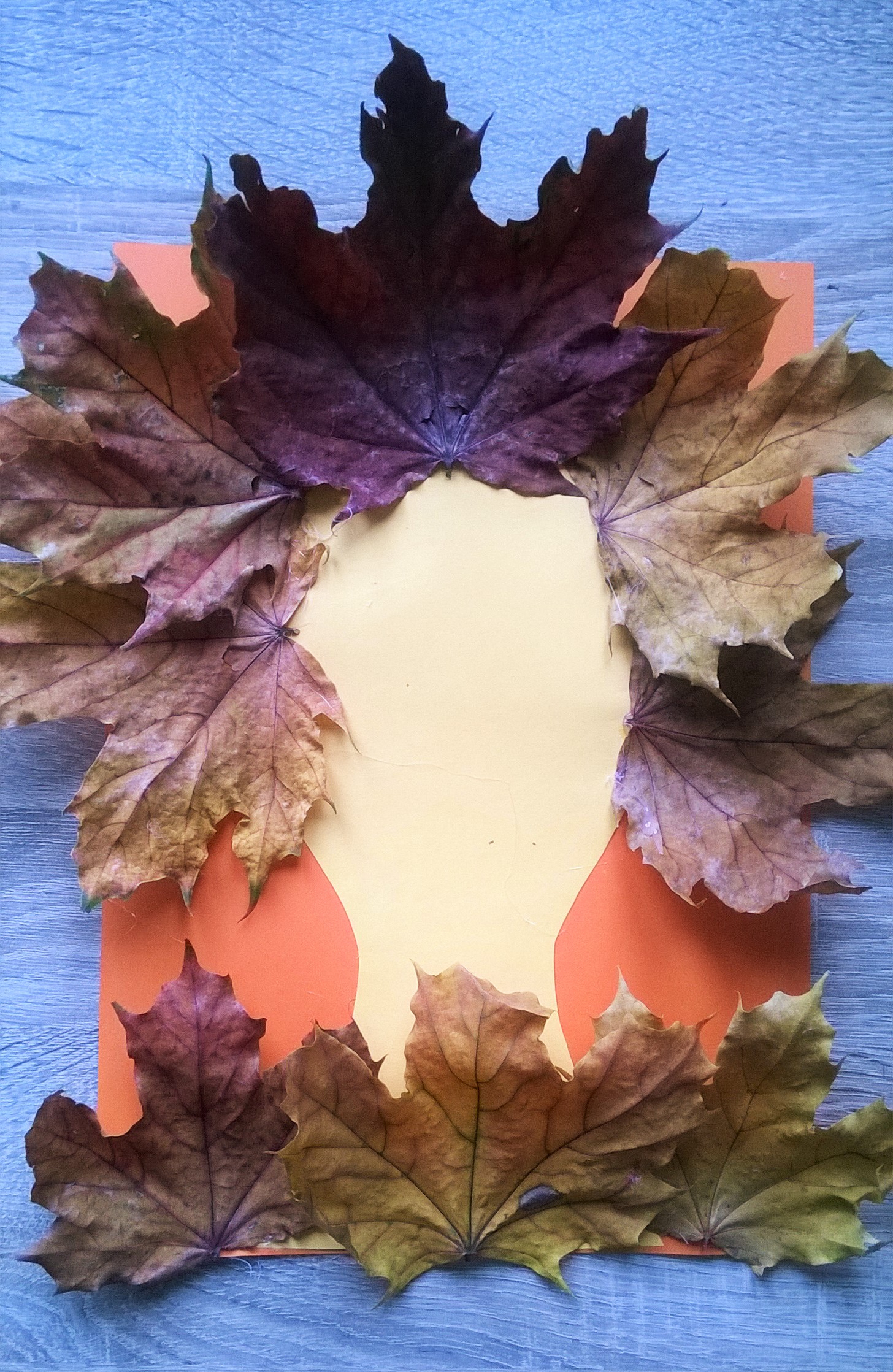 Zaczynamy od wycięcia kształtu głowy naszej głównej bohaterki. Następnie przyklejamy szablon na kolorowej kartce i doklejamy klejem na gorąco liście (uprzednio odcinając ogonki. Na koniec dorysowujemy oczy, nos oraz usta i pierwsza jesienna praca gotowa.