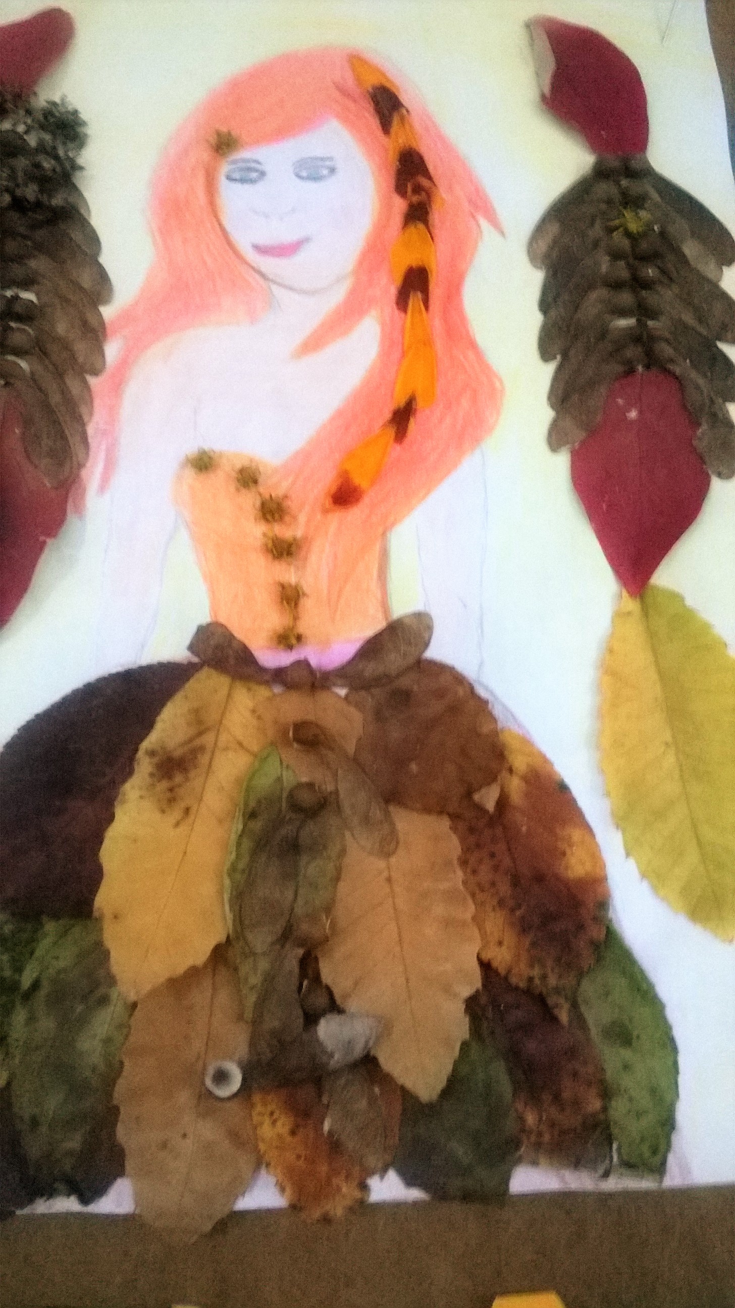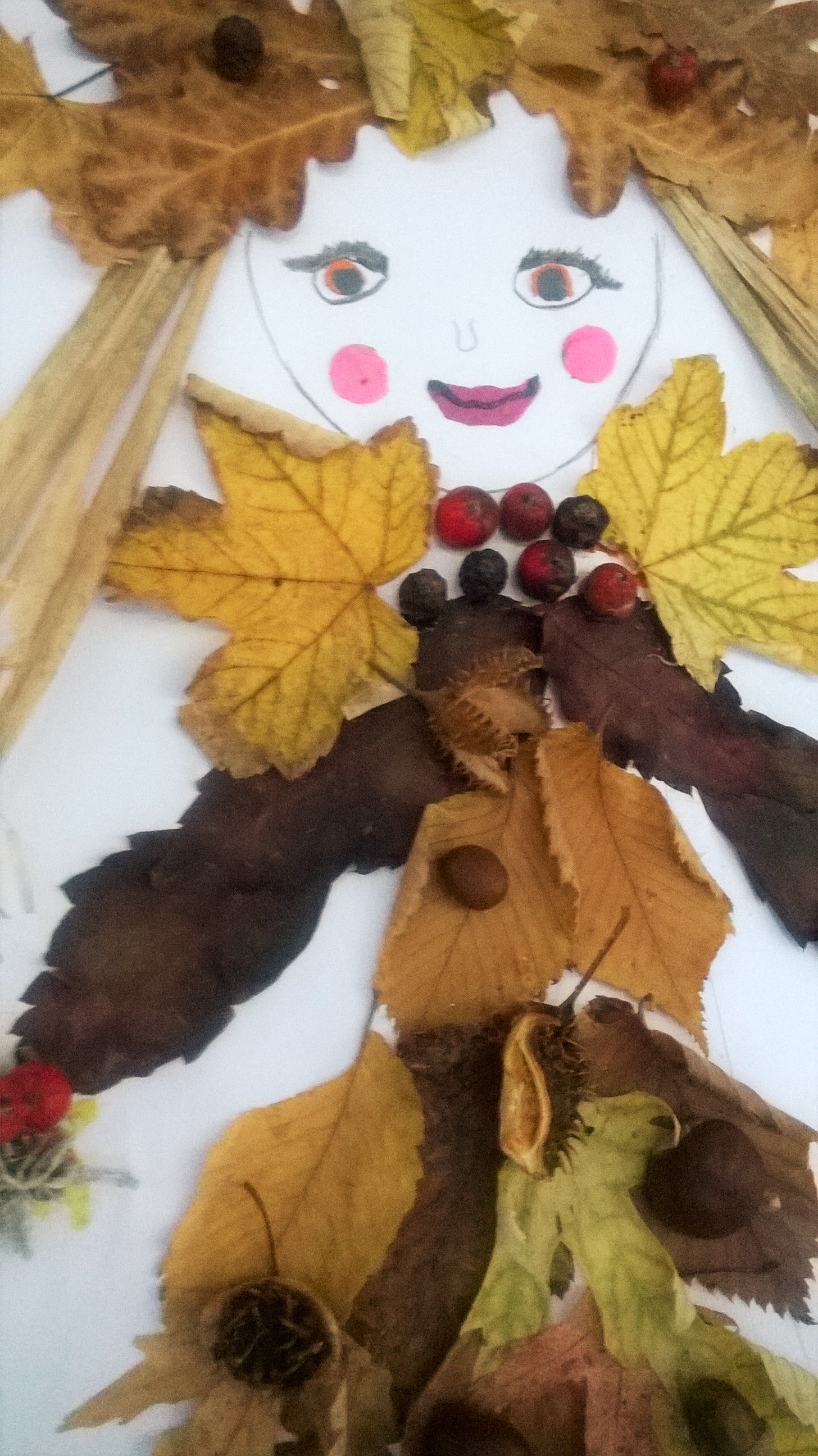 Uwielbiam takie prace. Wykorzystanie naturalnych elementów. Jesień jest idealnym czasem na tworzenie takich dzieł. Szkoda, że w tym roku pogoda nie sprzyja na spacery po parkach i lasach w poszukiwaniu materiału na prace.