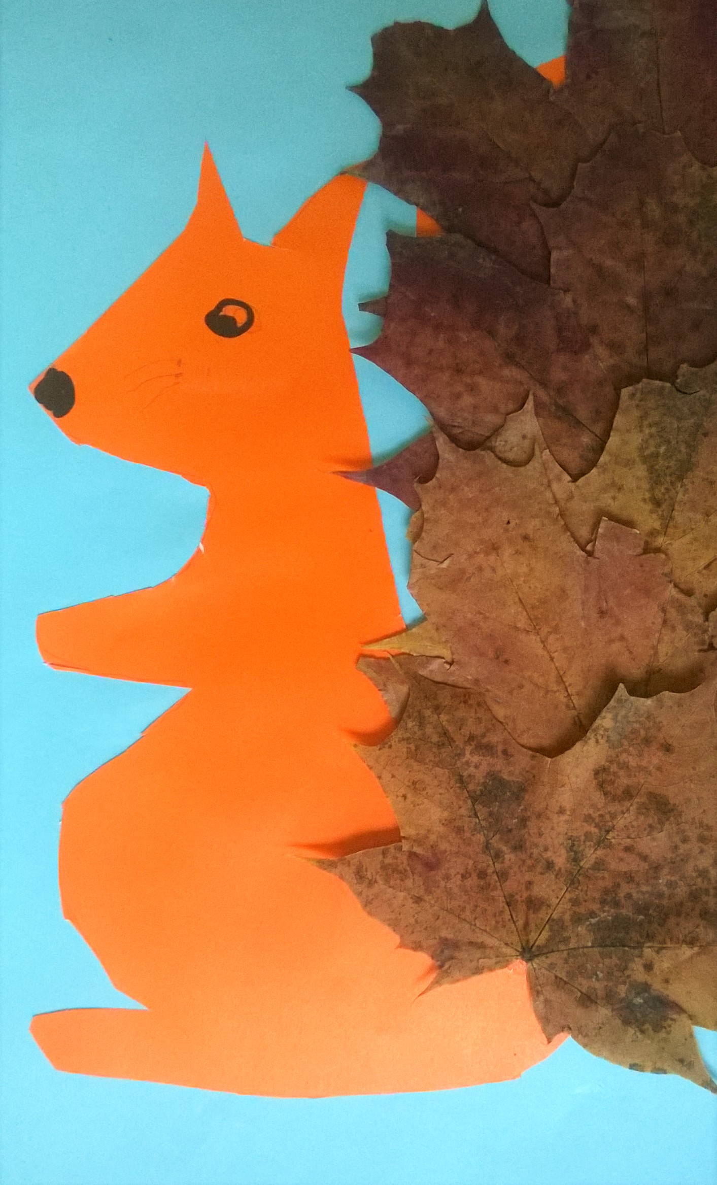 Doklejamy ogon z liści i wiewiórka gotowa.
