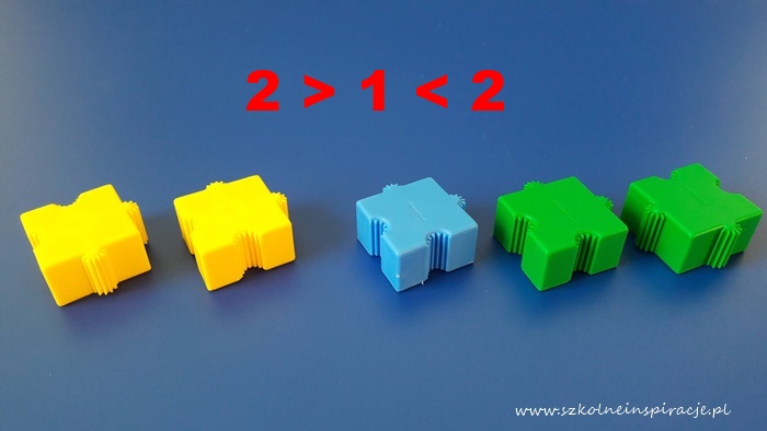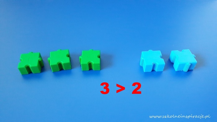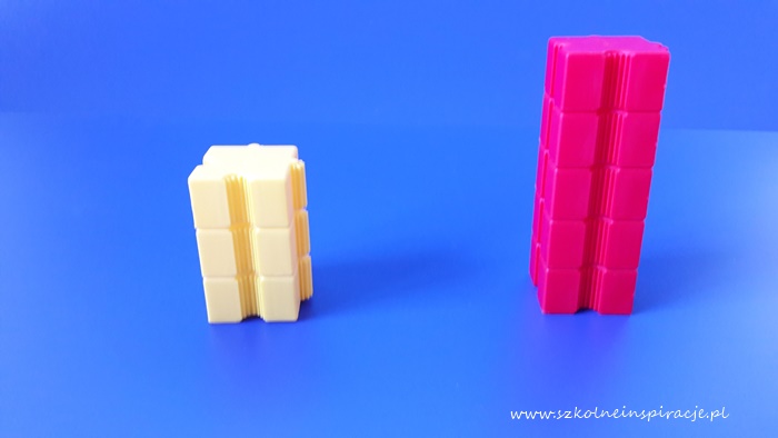 Na początku większość dzieci poda odpowiedź a). Wystarczy jednak kilka ćwiczeń oraz oczywiście samodzielne zbadanie zadania na klockach i potem już nie popełniają błędów.