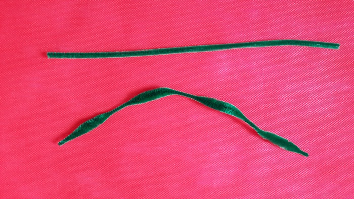 Użycie drucików kreatywnych o nieregularnej grubości pozwala na stworzenie listków i łodyżki w bardzo prosty sposób.