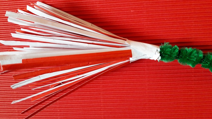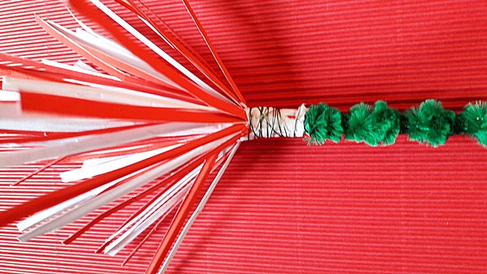 - Patyczek owijamy dwoma zielonymi drucikami kreatywnymi.