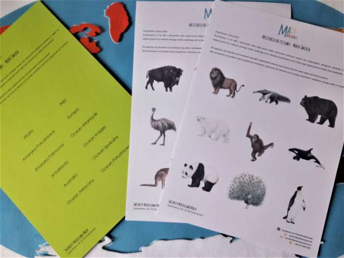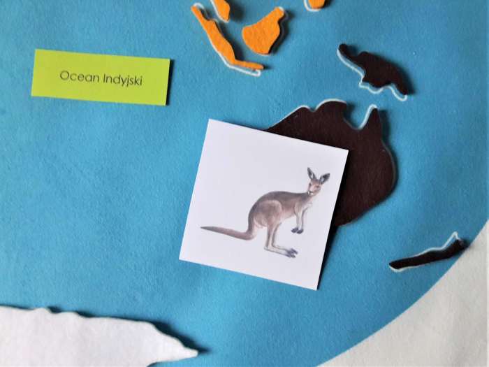 Uzupełnieniem takiej konturowej mapy są kontynenty ze sztywnego filcu, a mimo to przyjemnego w dotyku oraz podpisy do wydruku.