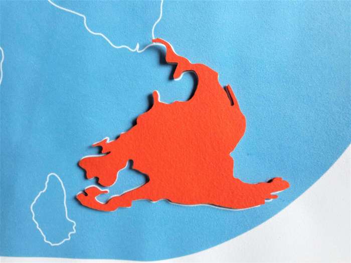 Położenie papierowej mapy na podłodze jest dość kłopotliwe. Z pomocą przyjdą nam specjalne mapy Montessori wykonane z tkaniny z warstwą antypoślizgową po lewej stronie.