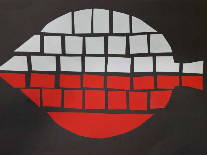 Do wykonania mozaiki – biało-czerwonego listka – potrzebujemy: