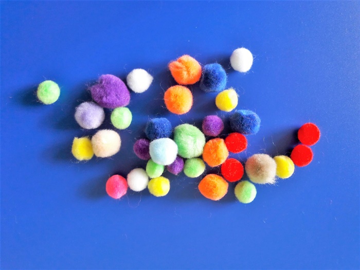 • małe kolorowe pomponiki zwykłe lub z wąsami