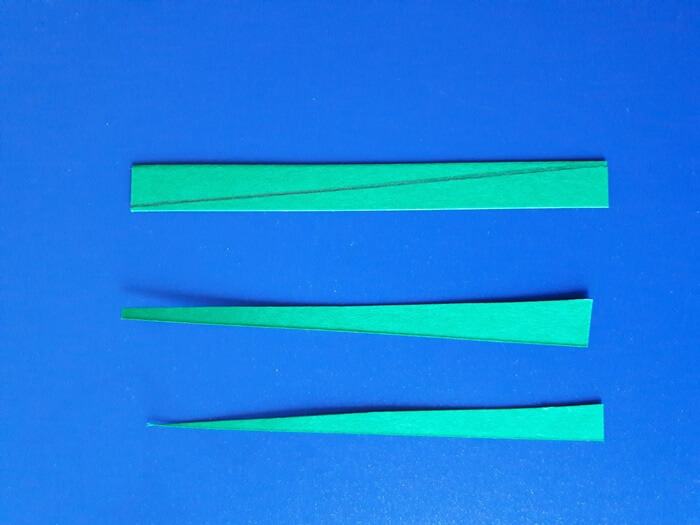 2. Zielone paseczki kartonowe tniemy na co najmniej 8 odcinków o długości około 16 cm, a następnie przecinamy je na skos.